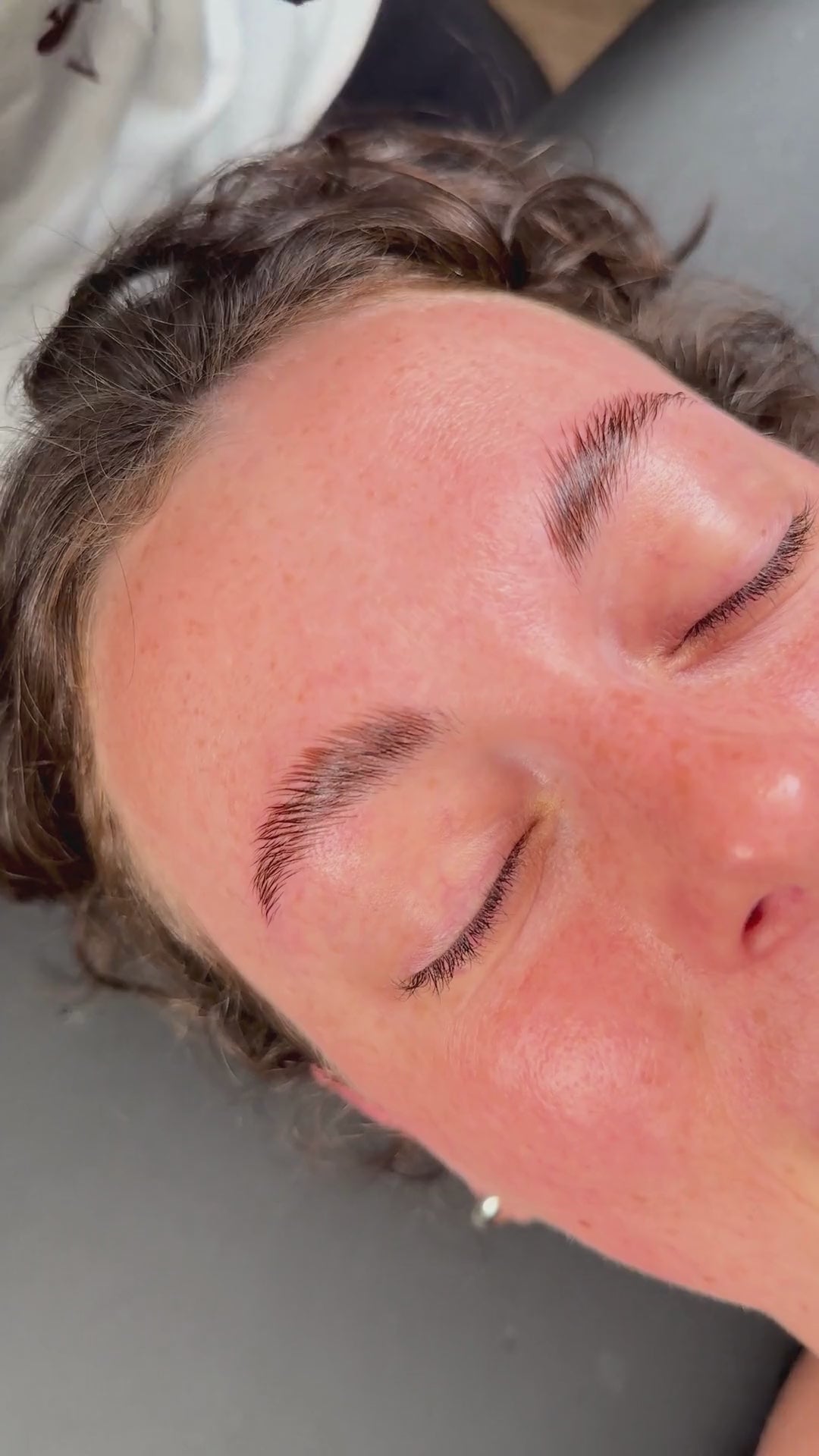 19) Remove the Dye with a moisturized cotton pad. In case that an ombre effect wants to be achieved, the Dye will be removed respecting the exposure time from the inner to the external part of the eyebrow. With the same cotton the Brow Paste will be removed.